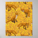 Foxes and buttercups on orange poster