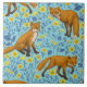 Foxes and buttercups on pool blue ceramic tile