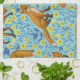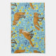 Foxes and buttercups on pool blue tea towel