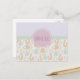 A postcard with a pattern illustrated with adorable foxes, birds and whimsical trees. The top half has a lavender purple background with a linen style texture. The centre has a pastel green banner. A pink circle holds the words "Thank You'. I think this whimsical pattern is really cute and reminds me of the happy times spent in nature.