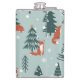 Foxes, fir-trees, winter, colourful pattern hip flask