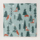 christmas, illustration, animal, fox, holiday, decor, xmas, forest, cartoon, white, poster, happy, green, blue, orange, celebration, snowflakes, drawing, ornament, comic