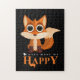 Original design of a fox with the words reading "Foxes Make Me Happy".