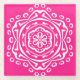 This white mandala sits on a bright pink background. The colour is bright and joyful. Part of the Pympbys Mandala Collection. This design may not print as bright as it appears online.