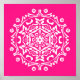 This white mandala sits on a bright pink background. The colour is bright and joyful. Part of the Mola Mandala Collection. This design may not print as bright as it appears online.