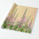This wrapping paper features an image of beautiful and colourful foxglove flowers set against a bright textured background, a cheerful design to brighten you gift wrapping.