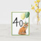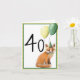 The realistic, beautifully painted red fox, centred in the middle of the card, with soft brushstrokes that make the fox look lifelike against a crisp, clean white background. The fox has a playful expression, with its ears perked up and a polka-dotted party hat perched on its head. Surrounding the fox are colourful balloons—soft yellow, and green—floating gracefully, adding a cheerful touch. The simplicity of the white background lets the artwork shine.