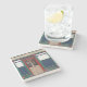 The coasters are gorgeous, a quality feel and heavy weight. They look like a precious archeological find. A rustic stone juxtaposed with a modern floral black and white print. I like the way the print goes slightly imperfect on the cut stone edges giving them a kind-of natural beauty.