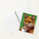 This fox features a fox dressed in eyeglasses and knit scarf drinking a hot cup of tea.