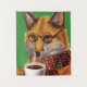 This fox features a fox dressed in eyeglasses and knit scarf drinking a hot cup of tea.