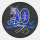 This classy design features a giant, blue faux-glitter '30', script text 'Foxy' and ribbon banner over a black background. Search ID191 to see other ages and more products with this design.