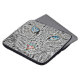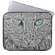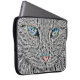 A custom laptop case that features a black and white artistic fractal cat background.