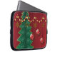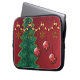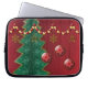 Layers of fractals make up this stylised Christmas design. A muted red backdrop, a spiky green tree, gold stars and snowflakes hanging from a strand of red and gold beads, and three red balls with a twirling gold design hanging in front.