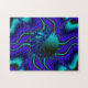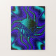 A fractal art design with indigo blue, teal, and black colours.