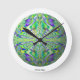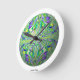 Fractal art wall clock.  Psychedelic, black light sensitive, cyberpunk.  Trippy rave clock geek gift!