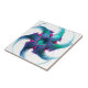 Swirls of pink, aqua, blue and purple with a white background make up this beautiful abstract fractal image. Now imagine it spinning around.