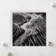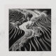 A stunning high-resolution black and white abstract landscape, crafted in the style of fractal art. This intricate composition features swirling lines that echo the paths of rivers or streams flowing through a rugged, textured terrain. Sparse vegetation and natural forms emerge through complex patterns, while the interplay of light and shadow adds depth and dimensionality. Perfect for lovers of modern, nature-inspired abstract art with a monochromatic edge.