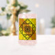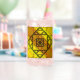 Three styles of hand-drawn fractals, including Sierpinski triangles, Apollonian gaskets, and a similarly themed square design, make up the layers of this geometric mandala, overlaid onto a bright yellow and orange gradient. This glassware is also available in rocks and stemless wineglass styles.