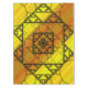 Three styles of hand-drawn fractals, including Sierpinski triangles, Apollonian gaskets, and a similarly themed square design, make up the layers of this geometric mandala, overlaid onto a bright yellow and orange gradient.