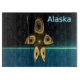 A brown-toned fractal image suggesting a highly-stylised Inuit hunter, wearing traditional fur clothing, holding a harpoon with an ivory head. The image is superimposed on a background depicting the dark polar winter.  Text reading "Alaska" appears in glowing blue and white.