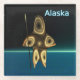 A brown-toned fractal image suggesting a highly-stylised Inuit hunter, wearing traditional fur clothing, holding a harpoon with an ivory head, placed in a dark polar landscape. Text reading "Alaska" appears in glowing blue.
