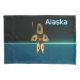 A brown-toned fractal image suggesting a highly-stylised Inuit hunter, wearing traditional fur clothing, holding a harpoon with an ivory head. The image is superimposed on a background depicting the dark polar winter. "Alaska" appears in glowing blue and white.