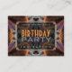 Fractals and geometric Art design party invitations cards : Elegant and unique design with colours of orange, silver, purples and dark chocolate / black customisable budget priced invitations in packs of 100. Hand them out at school, workplace, or it will fit easily in a standard envelope.
