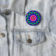 A colourful mandala button badge.