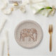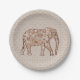 Mixed pattern digital graphic of a richly embellished elephant against an arabesque tiled background - Fractal swirl pattern in shades of light to deep taupe and cream accented with chocolate brown