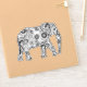 Sticker in a mixed media digital graphic of an elephant - Fractal swirl pattern in black, white and shades of grey / grey against a silver grey background