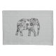 Mixed media digital graphic of an elephant against an arabesque tiled background - Fractal swirl pattern in black, white and shades of grey / grey against a silver grey background