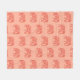 Fleece blanket in a pattern of a richly embellished elephants in a swirl pattern in shades of pale to deep coral orange accented with white, on a soft peach / pastel coral background
