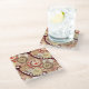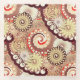 Fractal swirl pattern in shades of chocolate brown, mocha, tan and cream, accented with red glass coasters