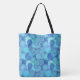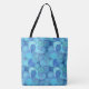 Printed tote in a Fractal swirl pattern in shades of ocean blue, turquoise, cobalt, aquamarine and sky blue