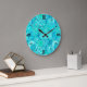 Fractal swirl pattern, shades of ocean blue large clock