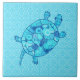 Fractal swirl turtle - cobalt and turquoise blue tile