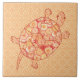 Mixed media digital graphic of a turtle in a fractal pinwheel pattern against an arabesque tiled background - shades of pastel to deep orange, accented with white, against a deep mandarin orange background