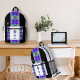 On this chic Backpack, style meets functionality with a touch of personalisation. Adorned with mesmerising fractal patterns in vivid blue, light gold, and pink-purple hues against a sleek black and white background, this backpack is a true fashion statement.