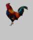 A lively image of a leghorn rooster, in vibrant gold, orange, red, blue, green and black, created in a fractal style.