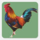 A lively image of a leghorn rooster, in vibrant gold, orange, red, blue, green and black, created in a fractal style.