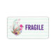 Address labels which says: FRAGILE. With a cute watercolor illustration of an egg sitting inside a wicker basket. Decorated with ribbons, bows, flowers and little hearts too. A pink flamingo and white bunny rabbit stand on either side watching over the precious cargo. pale green striped background.