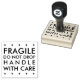 Custom rubber stamp with "fragile, do not drop, handle with care" in classic sans serif typography with trendy star borders. Available in several sizes, with additional ink pads available in many colours.