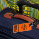 Luggage or bag tag in orange with the text, "Fragile, Handle with Care".