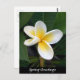 Postcard: Beautiful Fragipani flower with green leaves in the background. This typical flower of Asia, appearing in many paintings/movies of beauty & love has made its way to western world in perfumes as well as floral arrangements. Original Photography/Art/Design by work4dream.