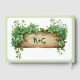 Lovely frame with greenery and stripes St. Patrick's Day Irish wedding guest book. This design showcases a vintage wooden frame adorned with delightful greenery and a border of soft pale green stripes. The front of the book features the names of the couple, beautifully written in a Celtic font. On the back, you'll find the initials of the couple's names within the same lovely frame. While it may not be the traditional clover design, the lush greenery and elegant font make this guest book a stunning choice for your St. Patrick's Day celebration.