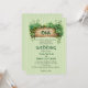 This vintage rustic style wedding invitation for St. Patrick's Day showcases a lovely wooden frame adorned with lively greenery and the initials of the happy couple. Against a backdrop of gentle pale green stripes, the invitation radiates sophistication with its Celtic font, making it perfect for a St. Patrick's Day wedding celebration. On the back, there is a charming striped pattern and a convenient QR code for guests to RSVP online, adding a contemporary element to this exquisite invitation.