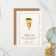 Neutral yellow and brown modern ice cream baby shower collection, here's the scoop collection, design feature watercolor floral chocolate ice cream scoop decor cute blue tiny flower in polka dot frame, perfect for summer baby shower party, this is gender neutral design for both boy and girl baby shower party