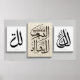 Elegant 3-piece Islamic art set featuring Surah Ikhlas calligraphy, perfect for modern living room decor.