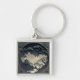An elegant square keychain picturing a framed 3D Chinese landscape in shades of grey.