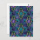 This vibrant design has teal/green peacock feathers on a purple background with bright green and purple butterflies inside fancy gold frames